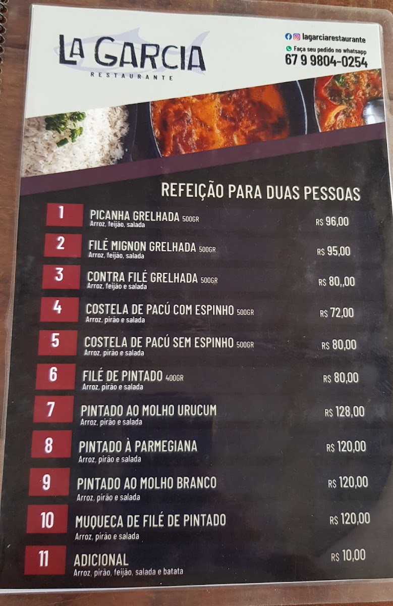 The menu at La Garcia Restaurant offers a delightful selection of regional dishes, highlighting the flavors of local fish and traditional Brazilian cuisine. Among the standout dishes, Filé de Pintado ao Molho Branco offers a savory white sauce that complements the tender fillet of pintado, a fish native to the region. Another popular choice is the Moqueca de Pintado E Costela de Pacú, a rich and flavorful dish featuring a combination of pintado fish and pacú rib, both cooked to perfection in a hearty stew.